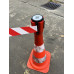 - traffic cone topper features automatic tape rewinding
