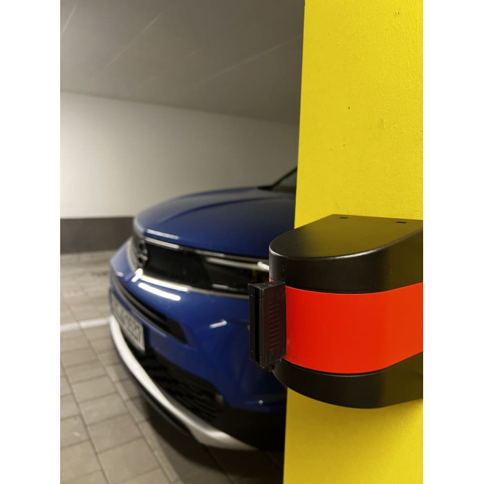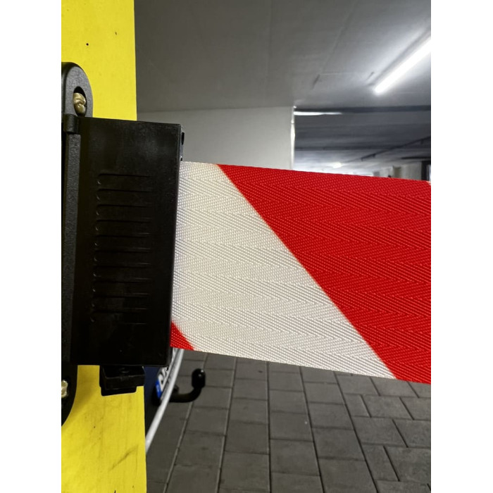 The demarcation tape guidance system for wall mounting and the extendable barrier tape wall mounting, yellow/black 10 m serve as effective components in the people guidance system, barrier belt with demarcation tape with wall bracket and wall bracket for barrier posts or tensators.